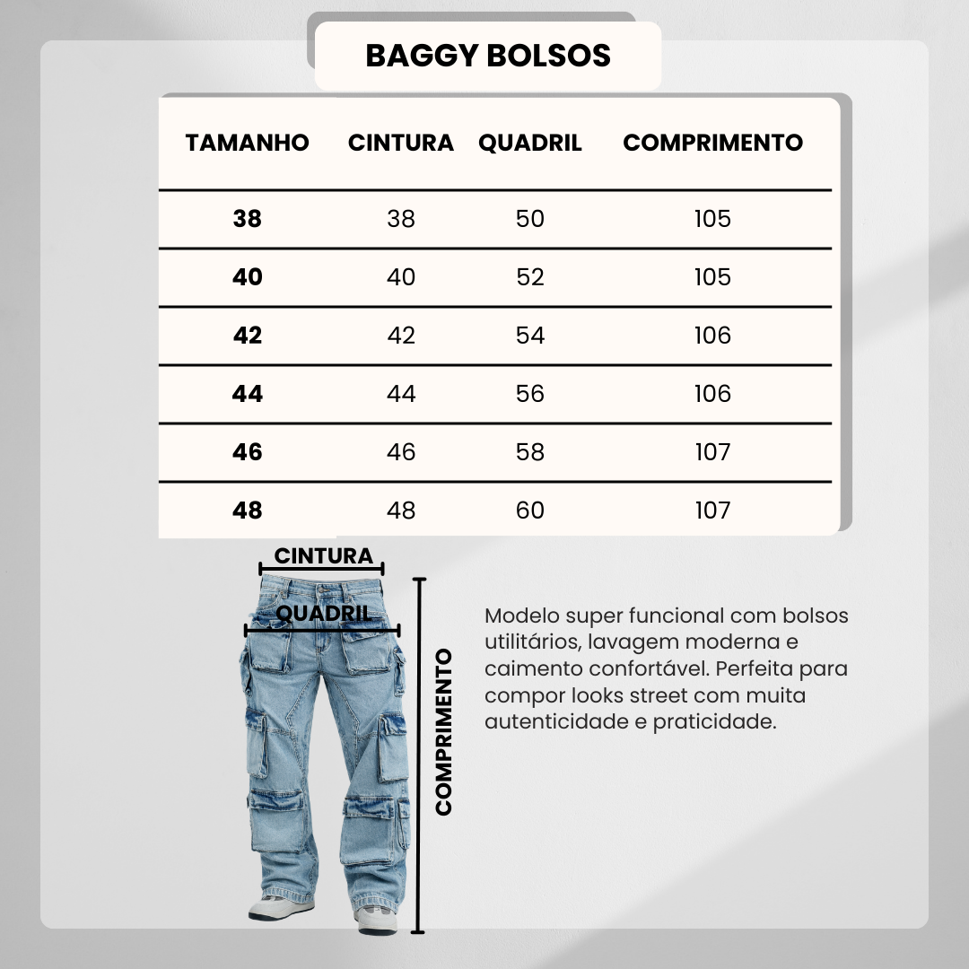 A Calça Cargo é a definição do skatewear clássico: larga, resistente e cheia de atitude. Produzida em jeans twill 100% algodão, ela tem estrutura firme e caimento baggy, garantindo liberdade total de movimento — perfeita pra manobrar, trampar ou só viver o rolê com conforto.